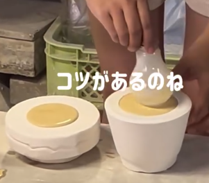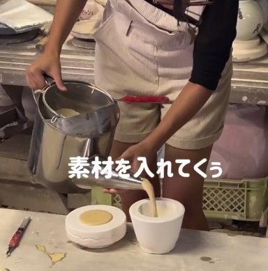 水で溶いた泥を、石膏型に流しいれて固める体験です。